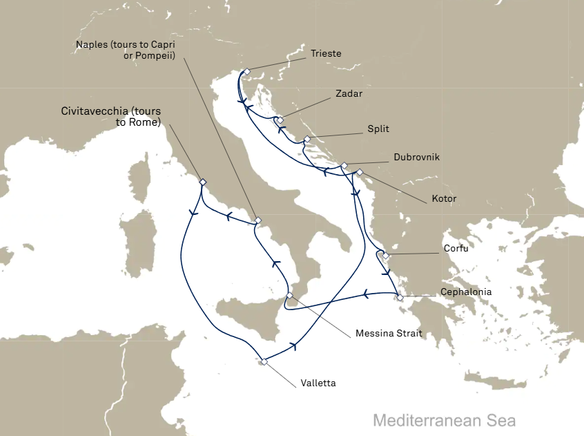 El orden de los puertos y / o el contenido del itinerario puede variar