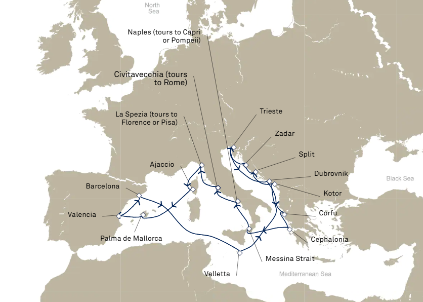 El orden de los puertos y / o el contenido del itinerario puede variar