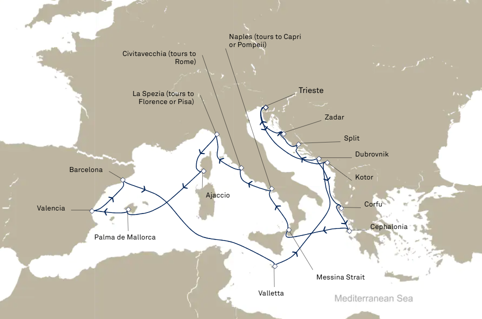 El orden de los puertos y / o el contenido del itinerario puede variar