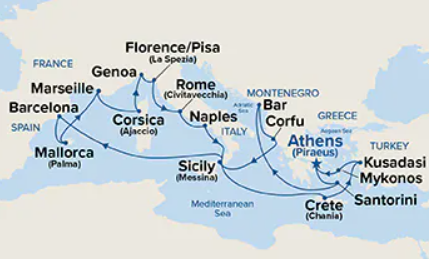El orden de los puertos y / o el contenido del itinerario puede variar