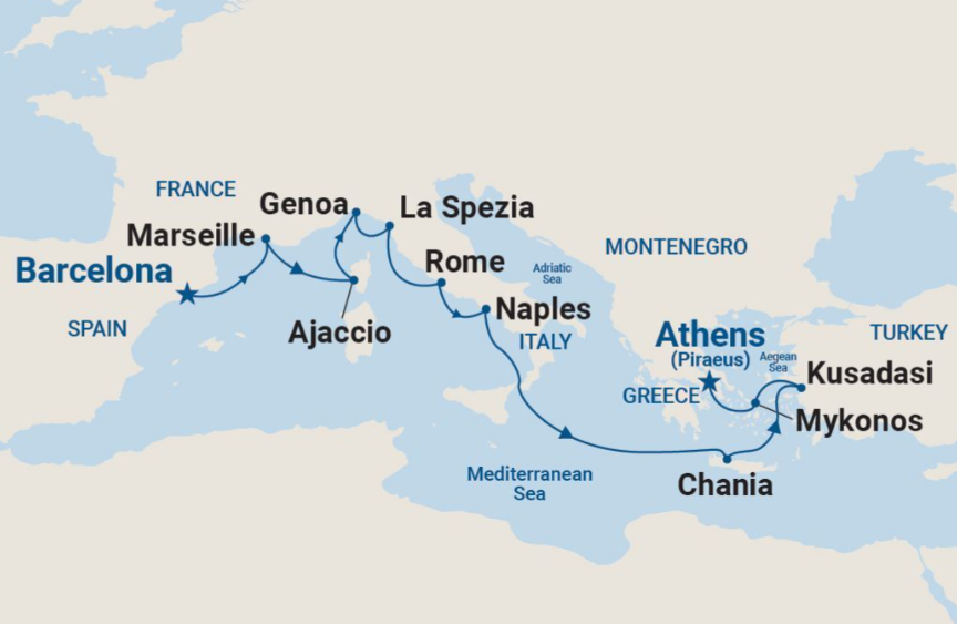 Compartiendo camarote con otras dos personas, 3º y 4º pasajero solo pagan tasas. Promoción valida en categorías y salidas seleccionadas reservando con tarifa NLW. Cambios de nombre no permitidos.Promoción válida para nuevas reservas del 9 de diciembre 2025 al 2 de marzo 2026. Fechas de salida a las que aplica: 23/05/2027, 15/08/2027