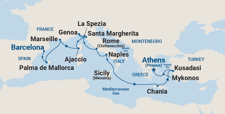 13 puertos de Barcelona a Pireo (Atenas)