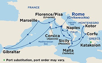 12 puertos desde Civitavecchia (Roma)