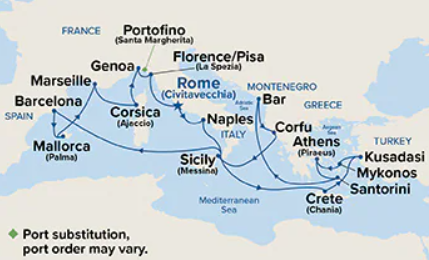 El orden de los puertos y / o el contenido del itinerario puede variar