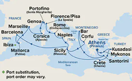 El orden de los puertos y / o el contenido del itinerario puede variar