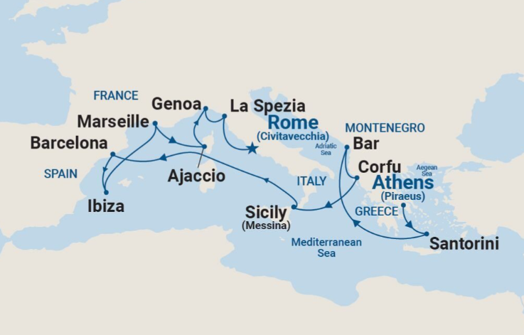 12 puertos de Pireo (Atenas) a Civitavecchia (Roma)