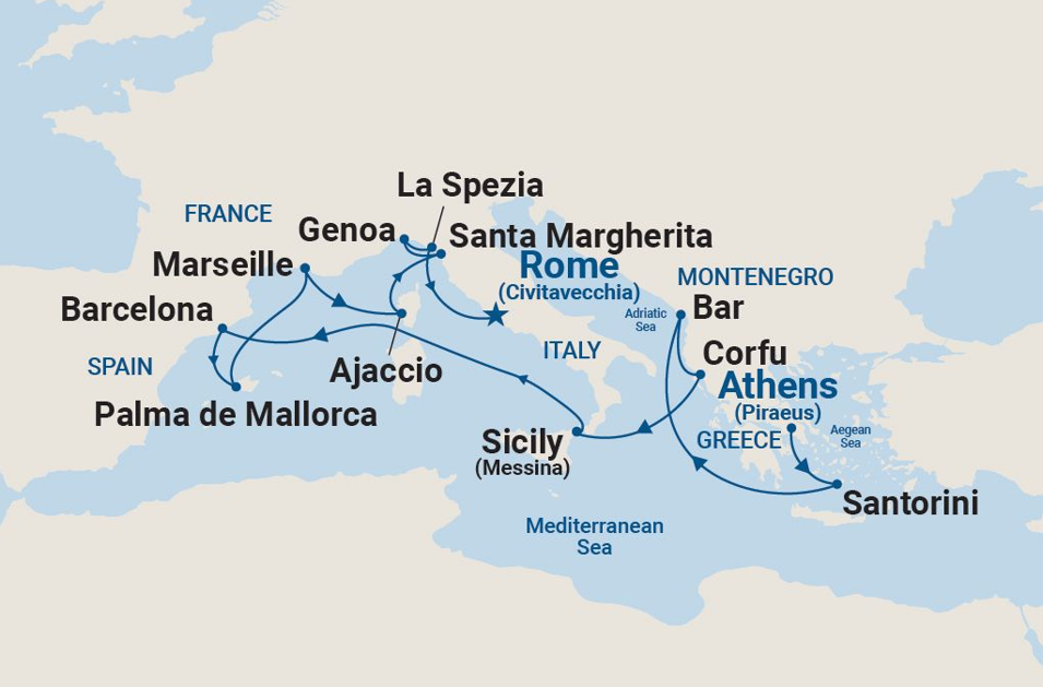 13 puertos de Pireo (Atenas) a Civitavecchia (Roma)