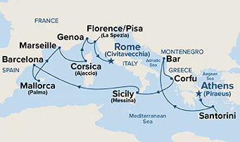 12 puertos de Pireo (Atenas) a Civitavecchia (Roma)