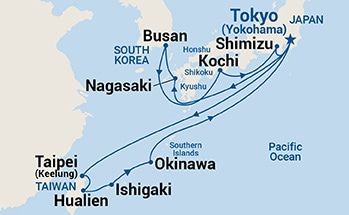 8 ports from Yokohama (Tokyo)