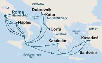 9 ports from Civitavecchia (Rome)