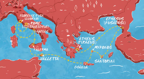 10 ports from Civitavecchia (Rome) to Pireo