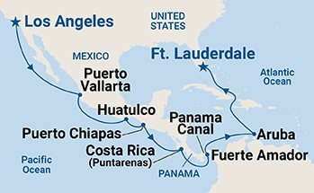 9 ports from Los Angeles to Fort Lauderdale (Miami)