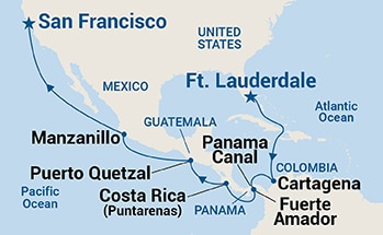 8 ports from Fort Lauderdale (Miami) to San Francisco