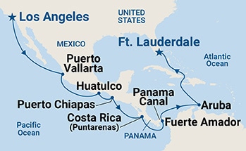 9 ports from Los Angeles to Fort Lauderdale (Miami)