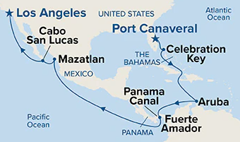 8 ports from Puerto Cañaveral (USA) to Los Angeles