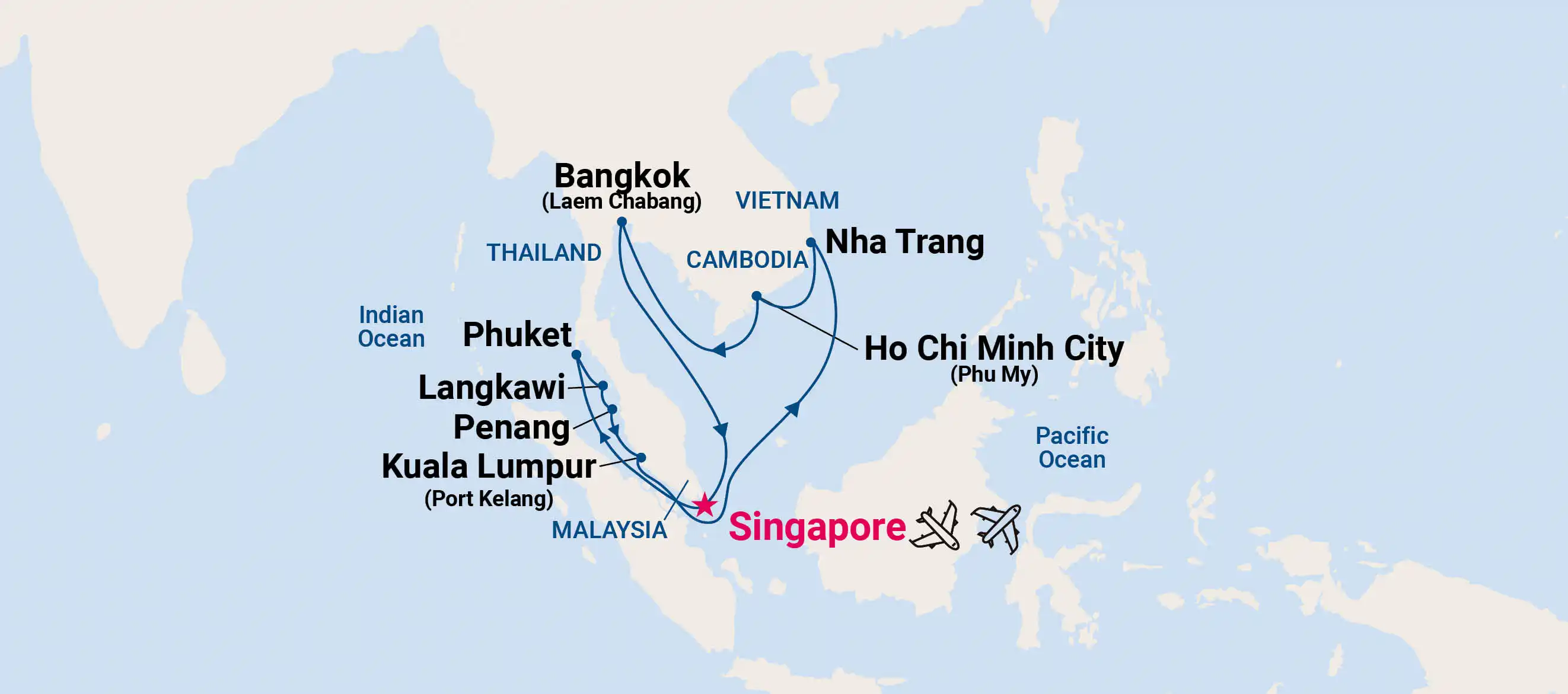 On a cruise through Southeast Asia, you can explore iconic destinations such as: