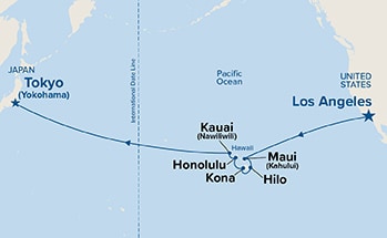 8 puertos desde Los Angeles, California hasta Tokio (Yokohama), Japón